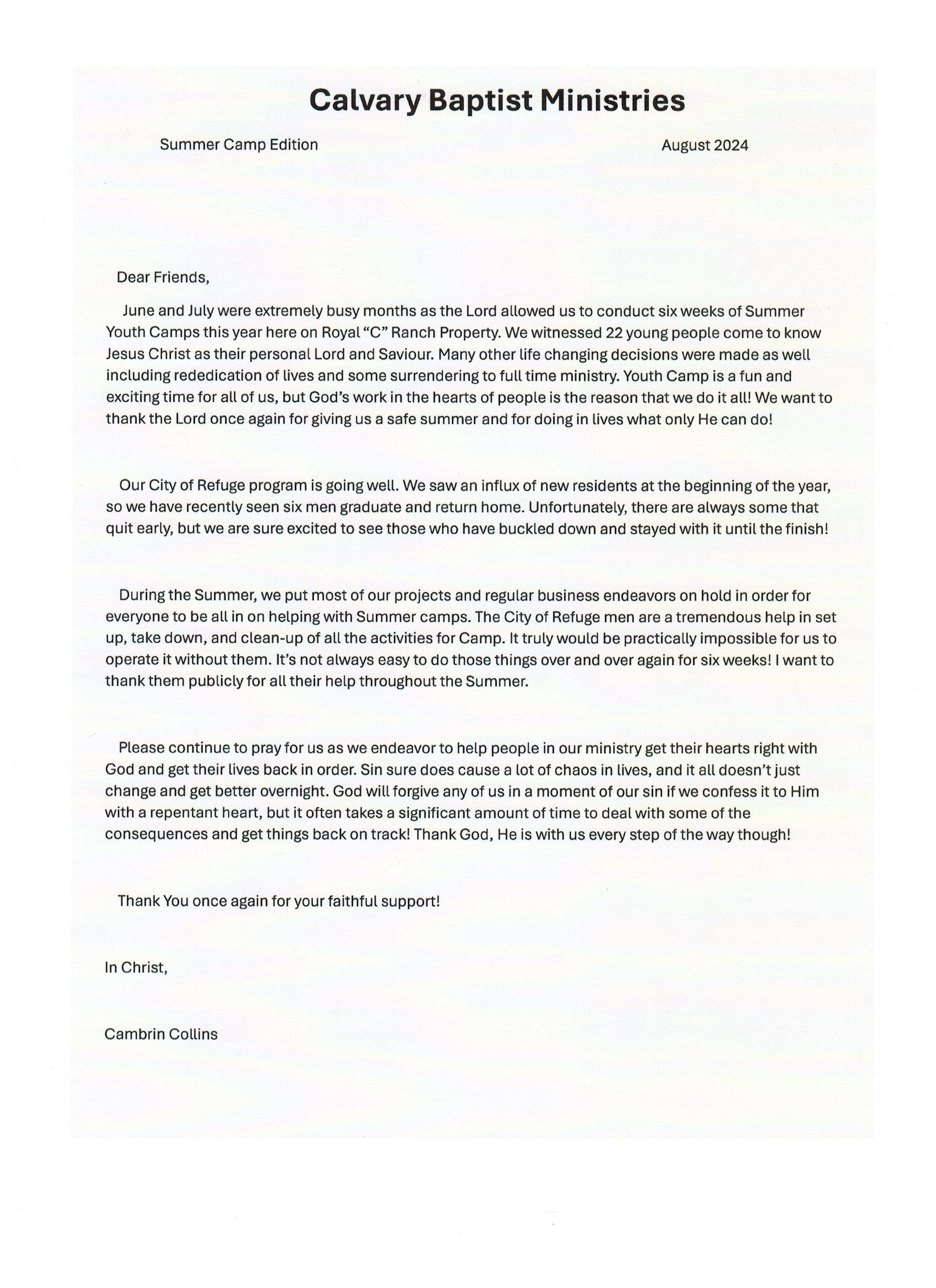 - Calvary Boys Ranch in Oklahoma, USA